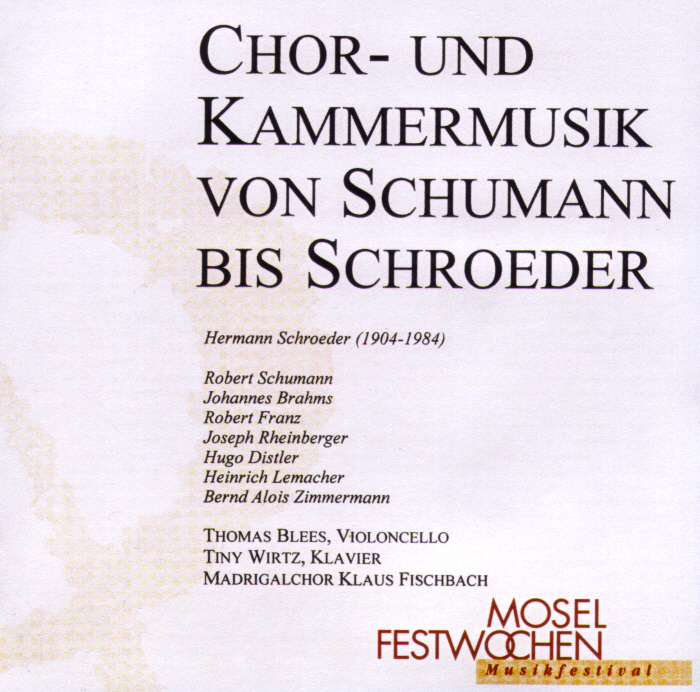 Interpreten: Thomas Blees (Violoncello), Tiny Wirtz (Klavier), Madrigalchor Klaus Fischbach, Ltg.: Klaus Fischbach